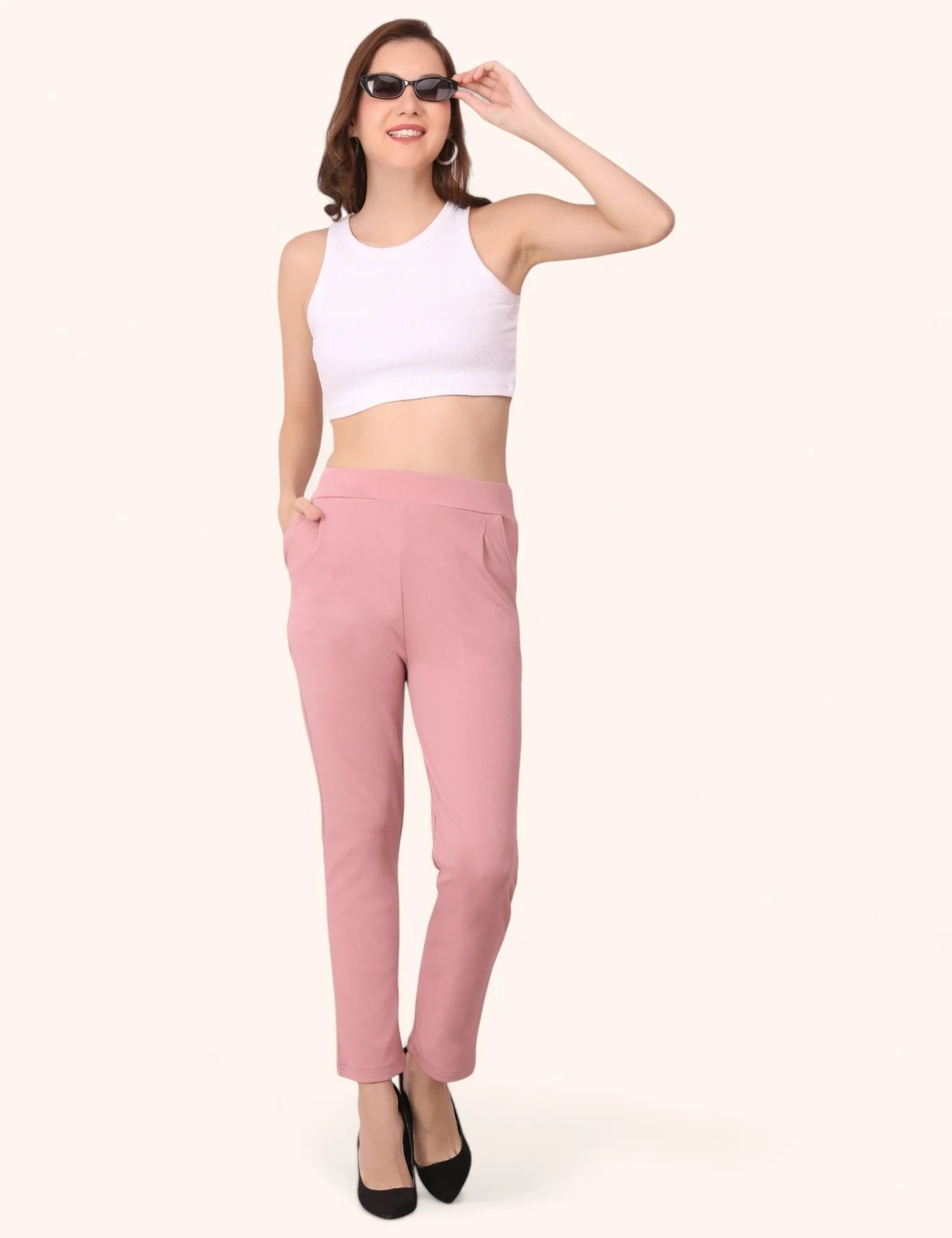 Women Cotton Baby Pink Trouser